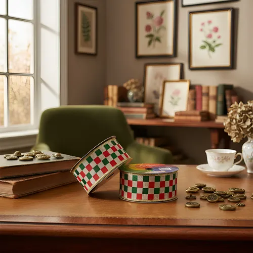 FITA SINIMBU ARAMADA XADREZ VERMELHO / VERDE / OURO (1831) COR-02 - 10 METROS NATAL