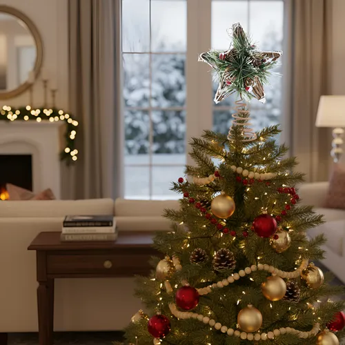 Ponteira decorativa em arranjo cru, perfeita para dar um toque rústico e elegante à árvore de Natal.