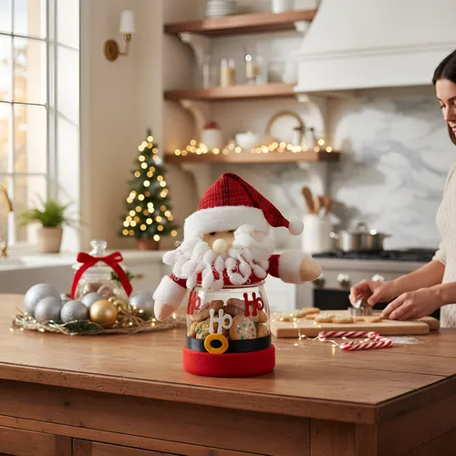 Medindo 14x26cm, é perfeito para armazenar doces, biscoitos ou pequenos presentes, além de ser uma charmosa peça para complementar a decoração natalina com estilo e diversão.