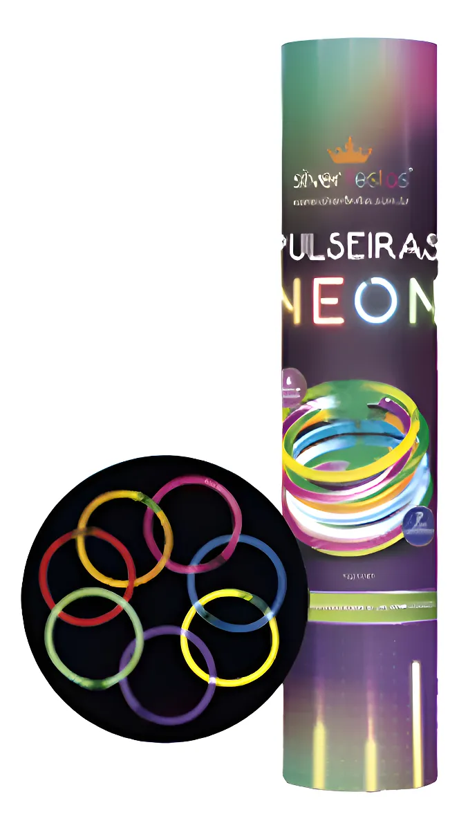 Pulseira Neon Para Festas - Tubo com 50 Un As Pulseiras Neon são o acessório perfeito para iluminar suas festas e eventos! Com um design vibrante e divertido, essas pulseiras são ideais para criar um ambiente festivo e alegre, seja em festas de aniversário, Carnaval, ou qualquer celebração. Características: Quantidade: Cada tubo contém 50 unidades de pulseiras neon, disponíveis em diversas cores vibrantes. Instruções de Uso: Ativação: Dobre o bastão para ativar a luz neon e começar a brilhar. Colocação: Encaixe a pulseira no pulso ou utilize como colar, dependendo da sua criatividade! Sugestões de Uso: Festas Temáticas: Perfeitas para festas à fantasia, eventos noturnos ou festivais. Decoração: Use as pulseiras como parte da decoração, pendurando-as em árvores, mesas ou como parte de um cenário.